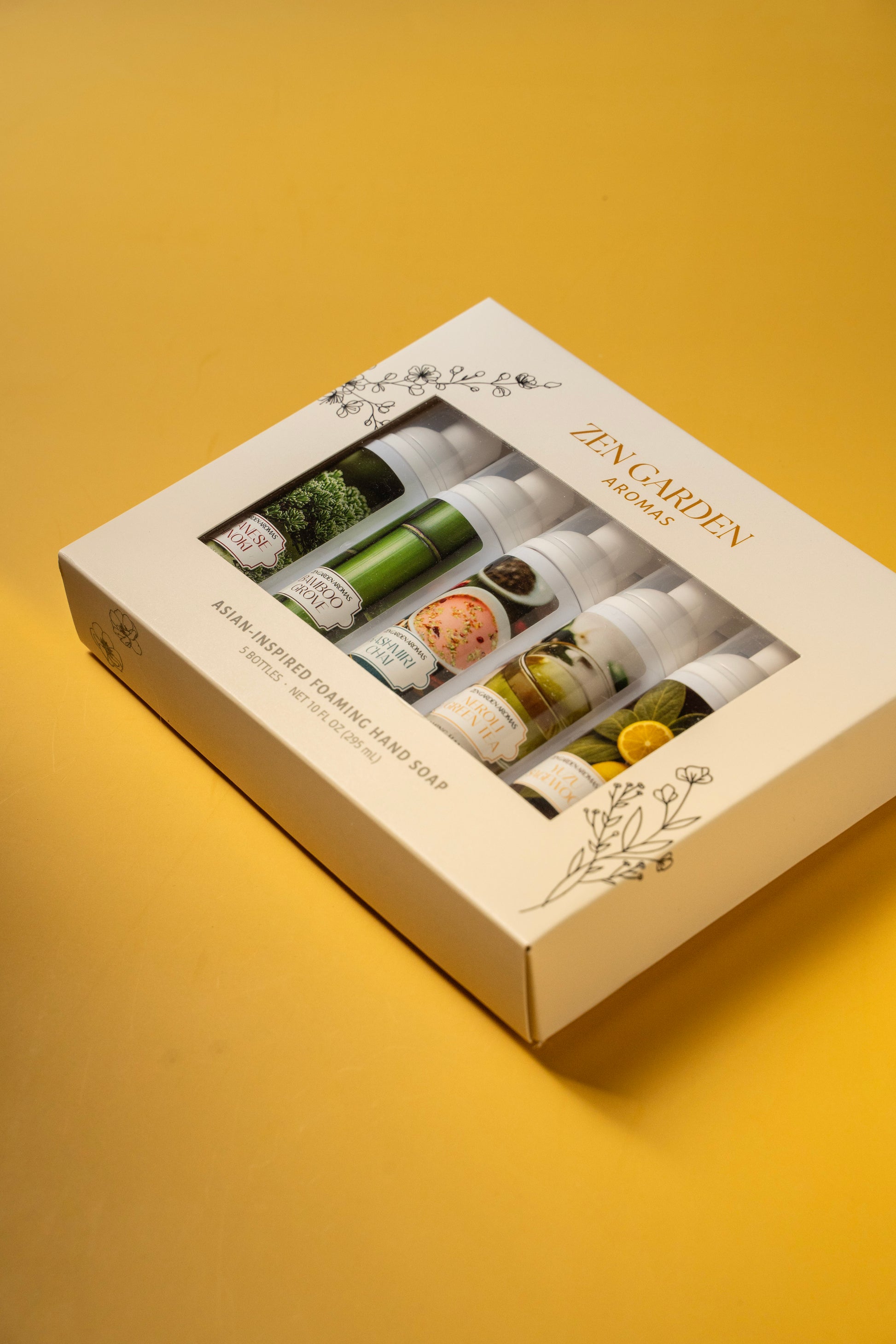 Experience our premium Men’s Collection, featuring five distinct 2 fl. oz bottles of our Asian-inspired foaming hand soap. This set includes: Japanese Hinoki, Bamboo Grove, Kashmiri Chai, Neroli Green Tea, and Yuzu Sagewood. Perfect for gifting or trialing a variety of scents!